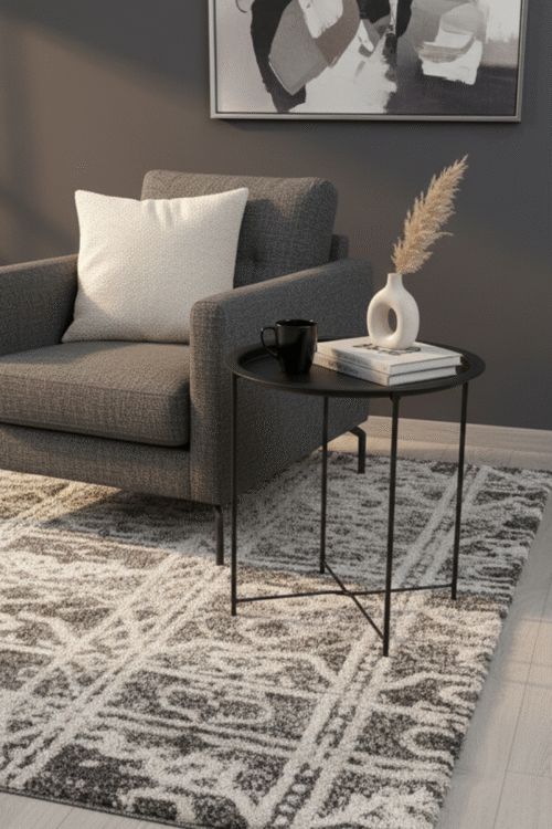 Mobile C-Shaped Side Table with Storage Pocket & Bottom Shelf