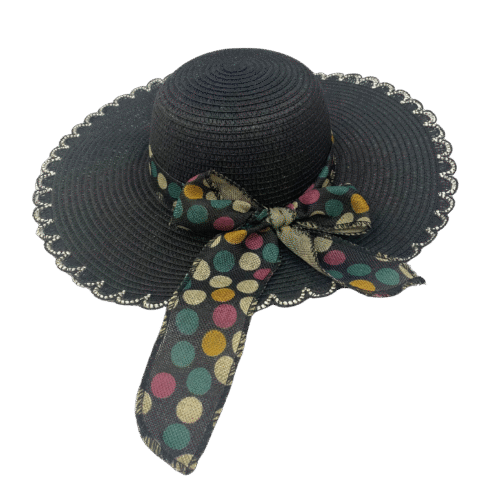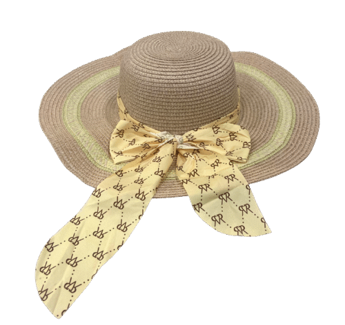 LADIES 2 TONE STRAW HAT W/BOW TIE