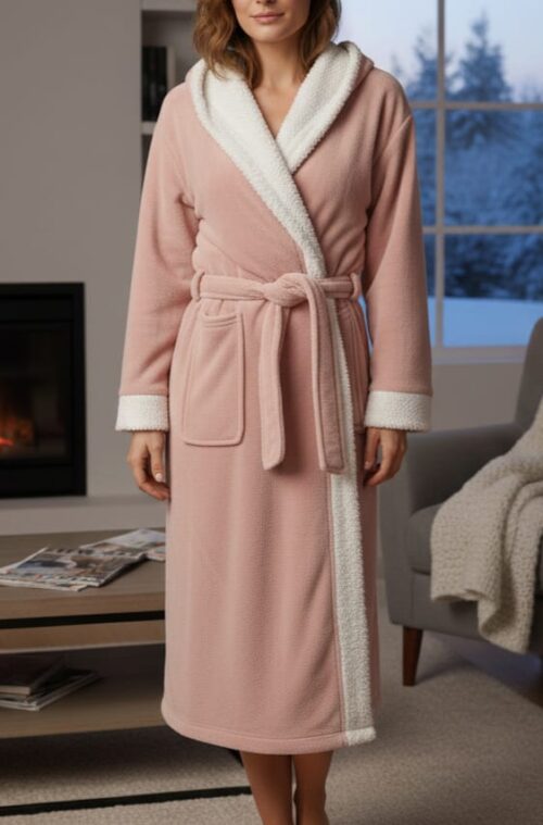 MONHOUSE LDS PLUSH L/S HOODED GOWN – PINK