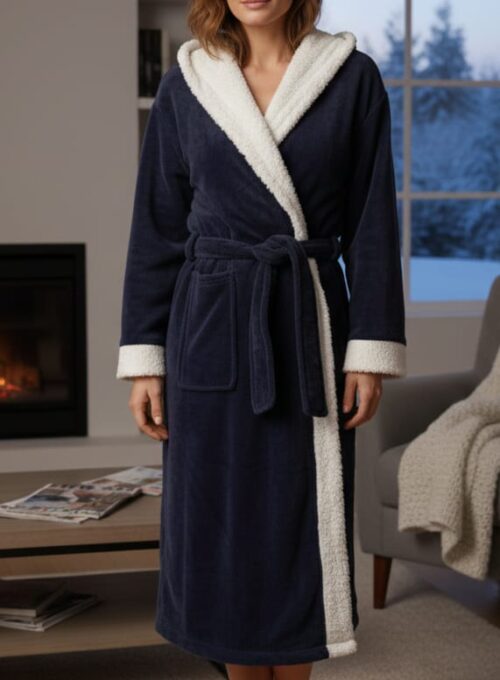 MONHOUSE LDS PLUSH L/S HOODED GOWN – NAVY