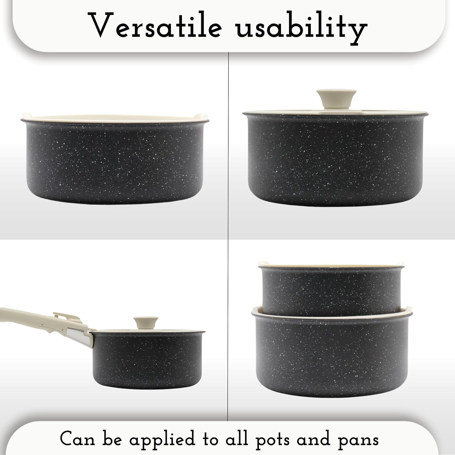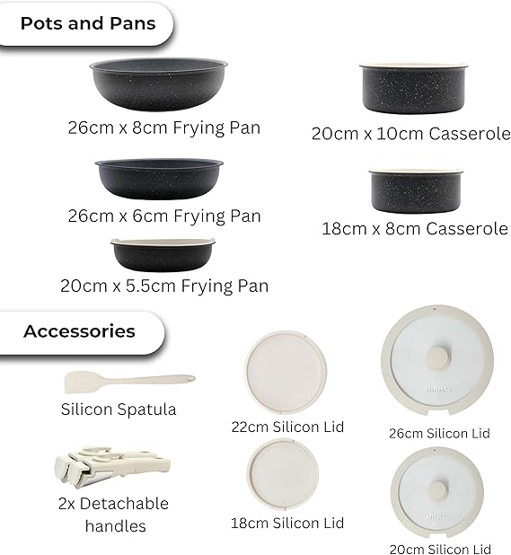 Upgrade your kitchen with this innovative, space-saving cookware set designed for modern living. The detachable handles allow the pots and pans to stack neatly, saving up to 70% storage space while keeping your cupboards clutter-free.