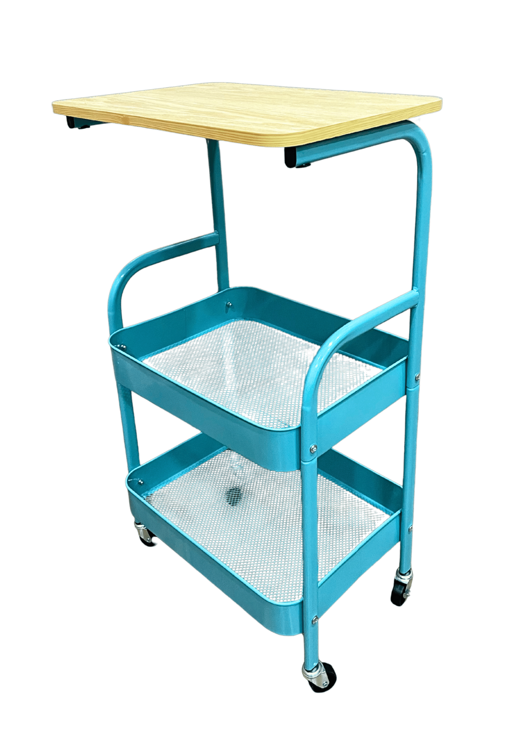 The 2-tier multifunctional trolley with a lightwood table top and wheels is a versatile storage and utility solution. It features two spacious shelves for organizing essentials, tools, or kitchen items. The flat tabletop surface adds extra workspace or display area. Equipped with smooth-rolling wheels for easy mobility across rooms. Ideal for use in homes, offices, salons, or workshops.Comes in assorted colours.