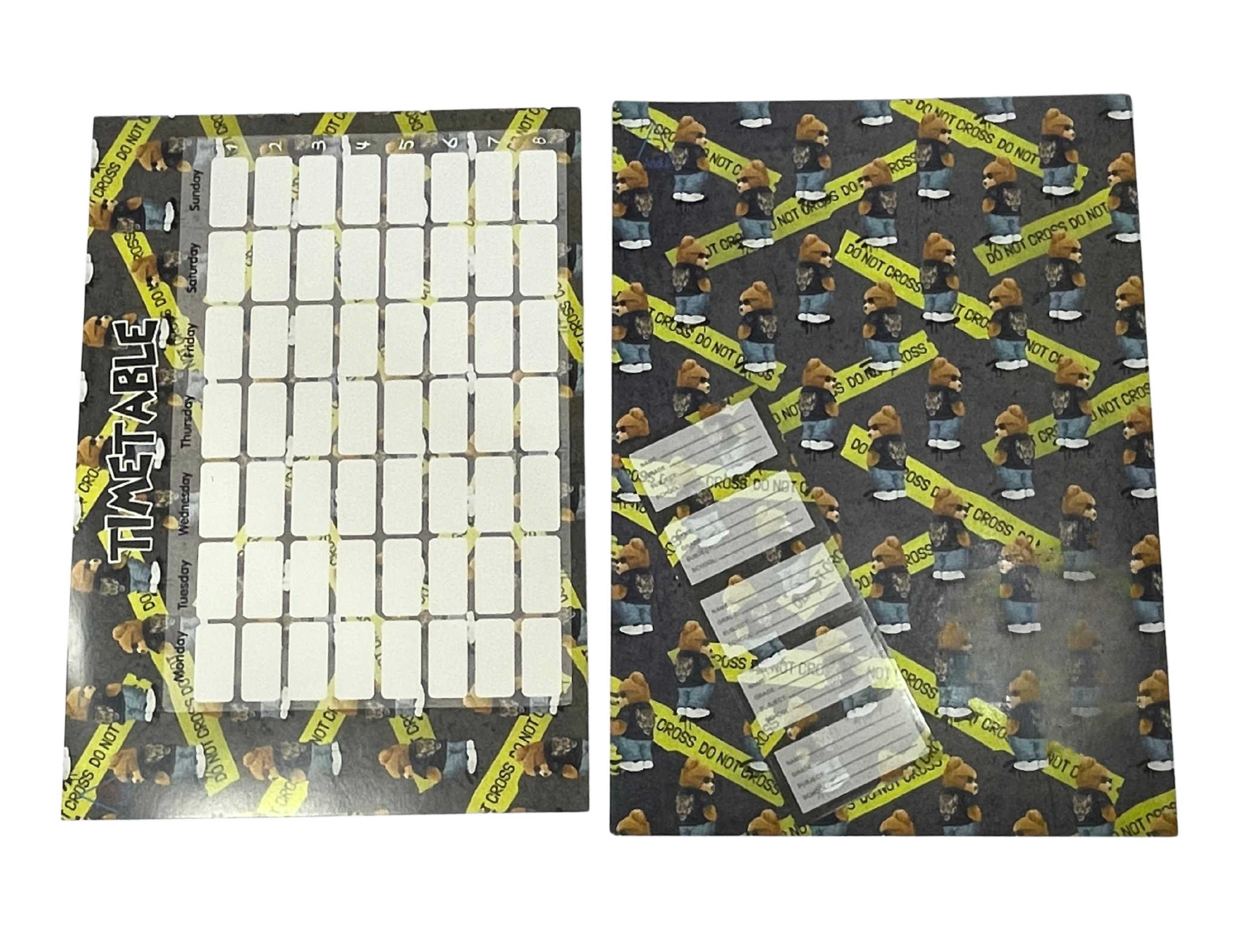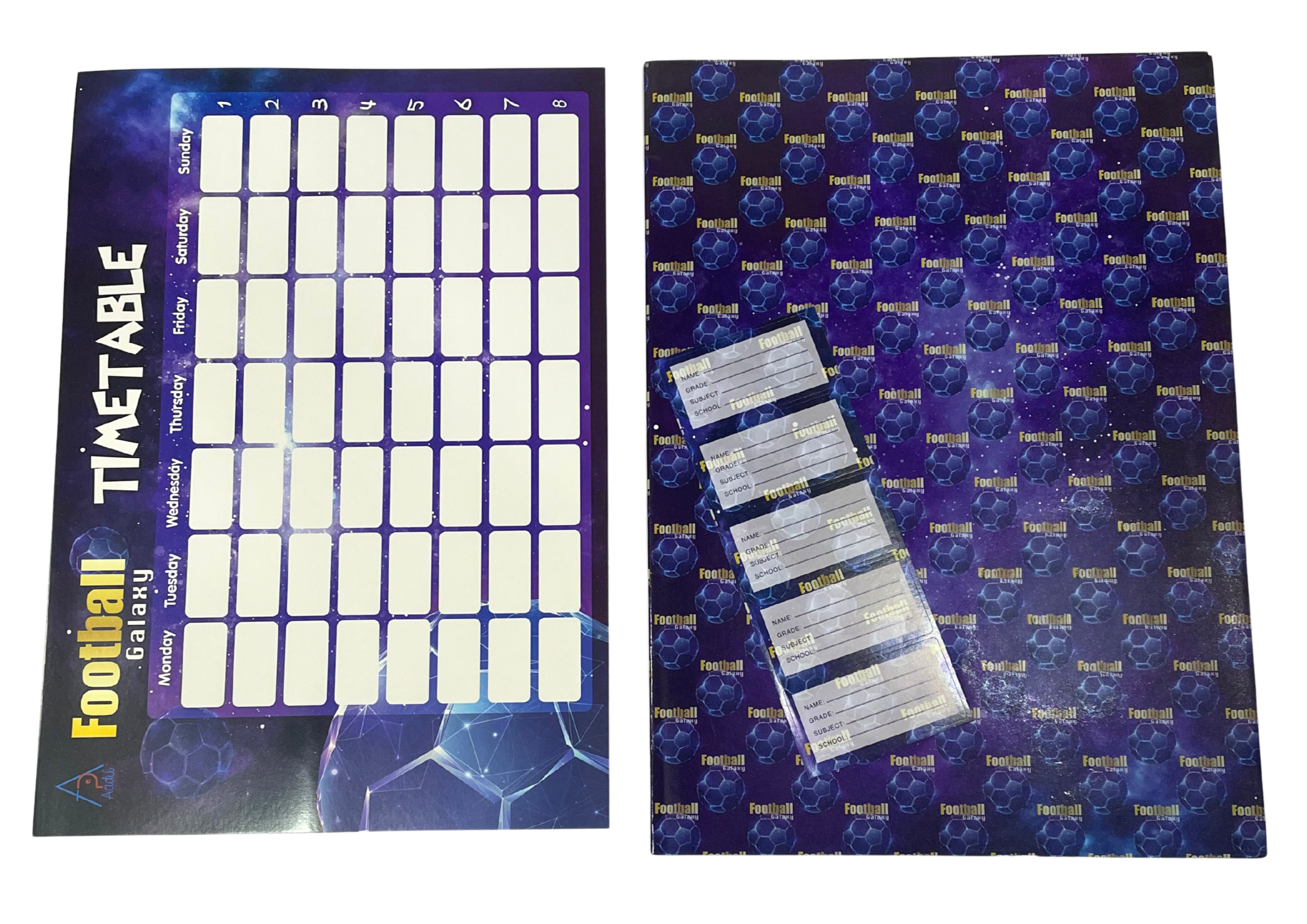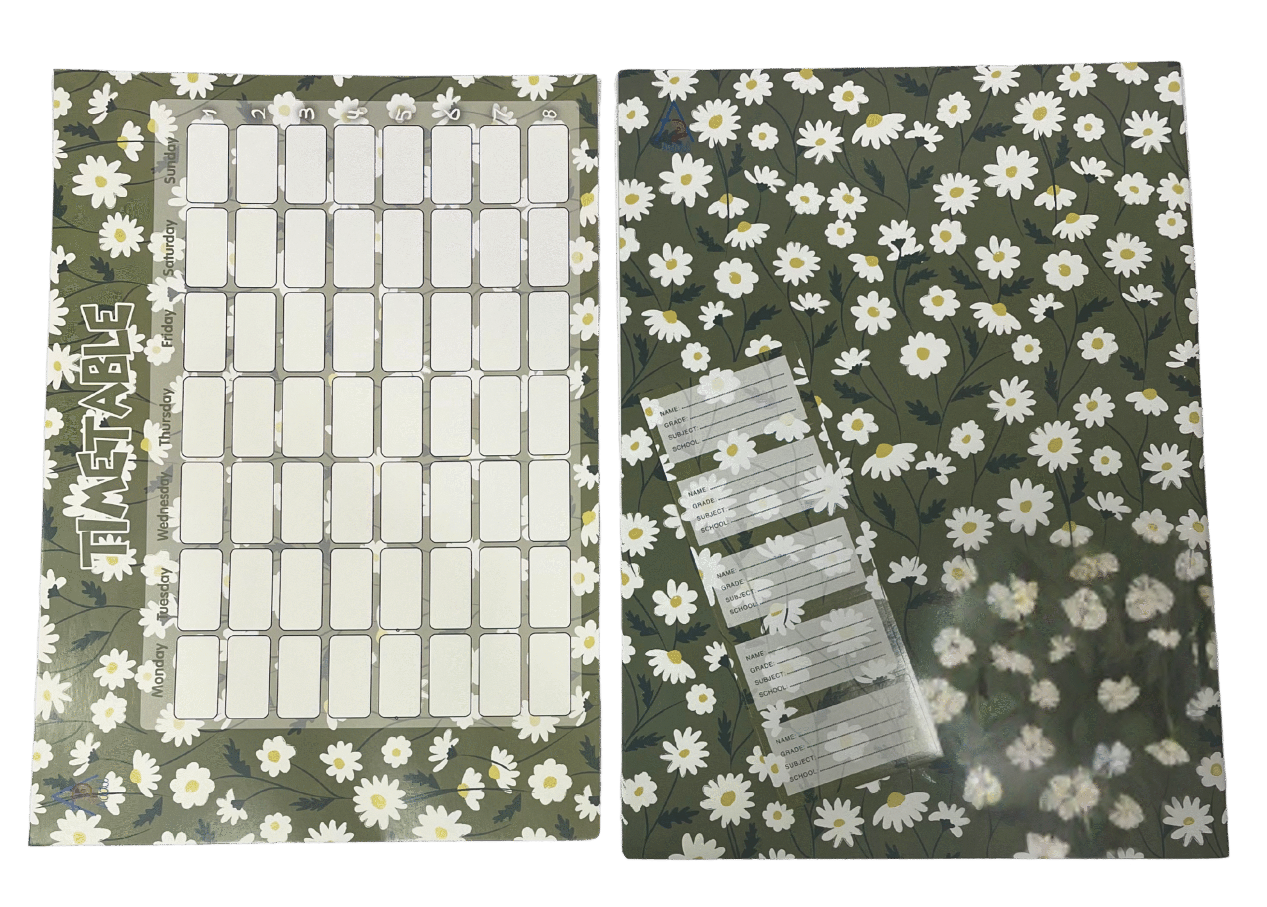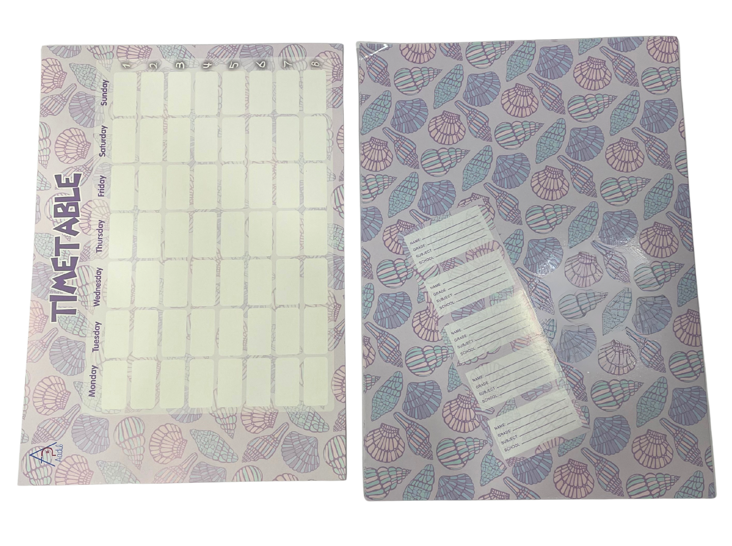 This 5-pack of Laminated Covers features vibrant assorted prints designed to protect and personalise school books. Each cover pack is made from durable laminated material for long-lasting use and easy cleaning. The set also includes a matching weekly timetable planner and coordinated sticker labels for a neat, organised finish.