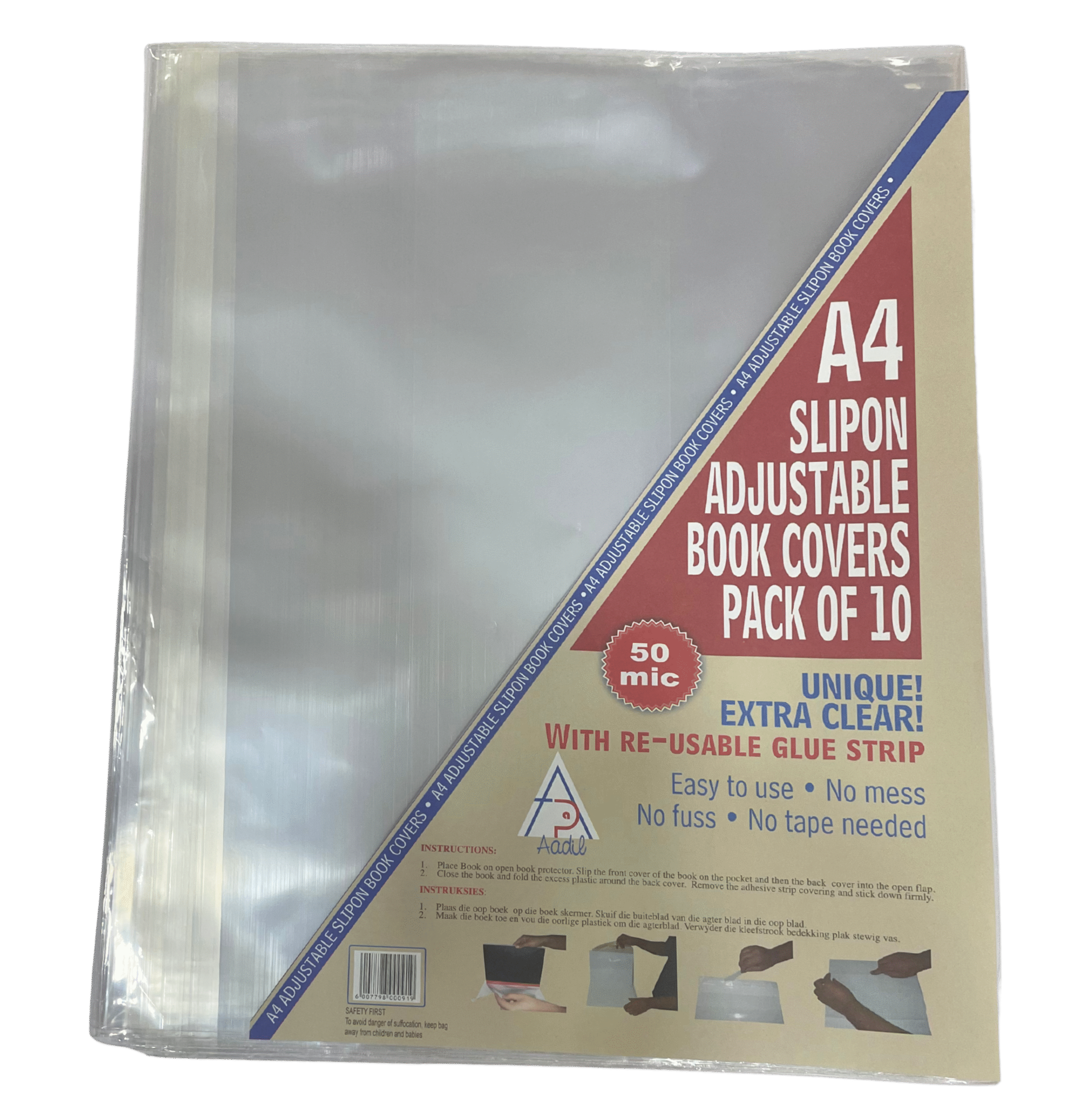 A4 ADJUSTABLE SLIPON BOOK COVERS – 10PK