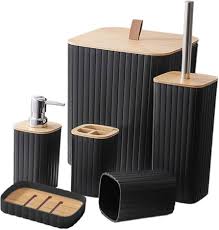 A sleek and coordinated 6‑piece bathroom set delivers essential accessories  which includes a soap dish, tumbler, toothbrush holder, lotion dispenser, trash bin, and toilet brush—for streamlined organization. Designed for durability and simplicity, it keeps bathroom surfaces clutter‑free while elevating everyday routine.