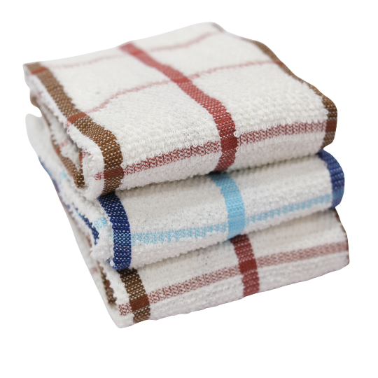 This 3-pack set features soft, durable kitchen towels made from 100% pure cotton for excellent absorbency and quick drying.Perfect for drying dishes, wiping surfaces, or general kitchen use. Machine washable and long-lasting. Comes in assorted checkered colours.