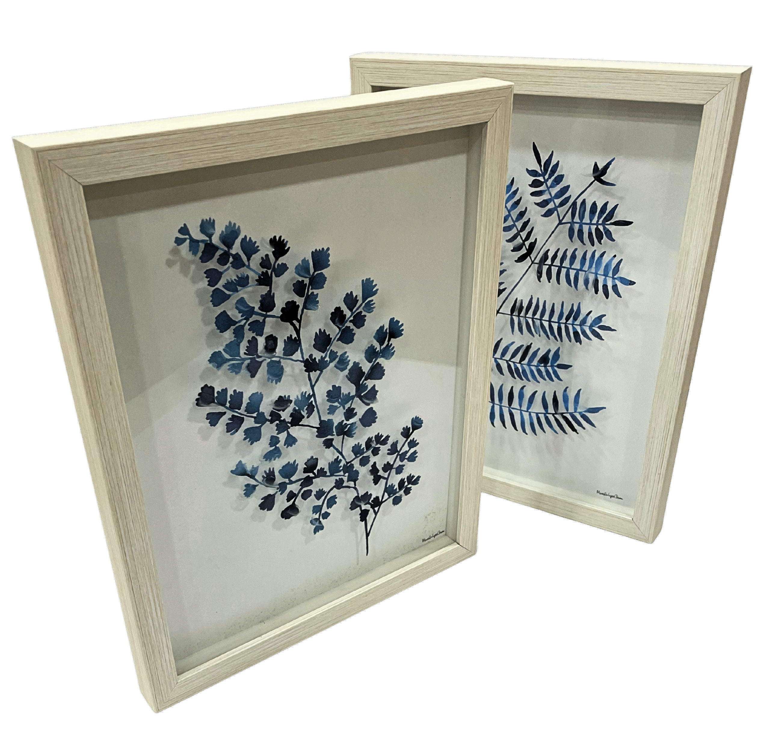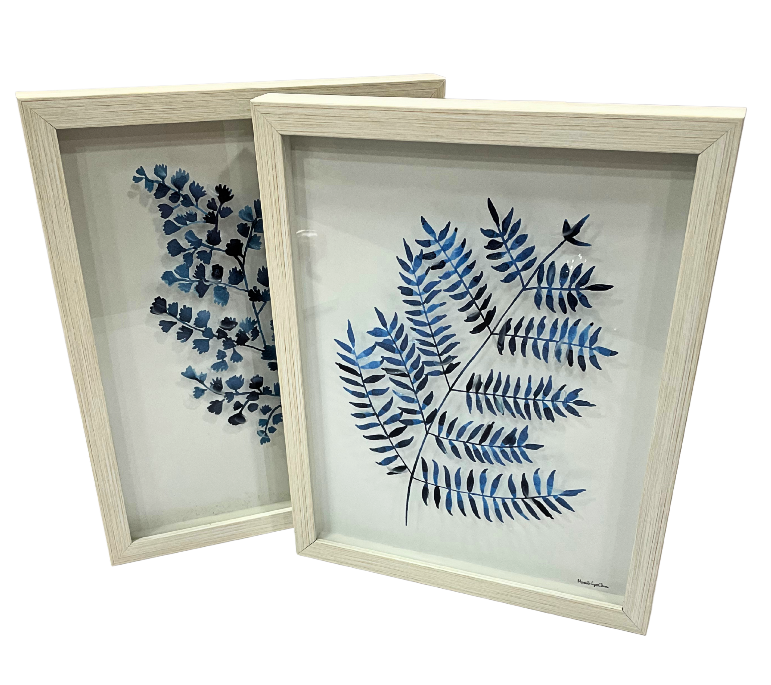 This 2PC Wooden Framed Glass Art Set features serene blue tree/leaf paintings for a natural, calming vibe. Encased in sturdy wooden frames with a glass front for a refined, gallery-style look. Ideal for enhancing living rooms, bedrooms, or office walls with a touch of nature.