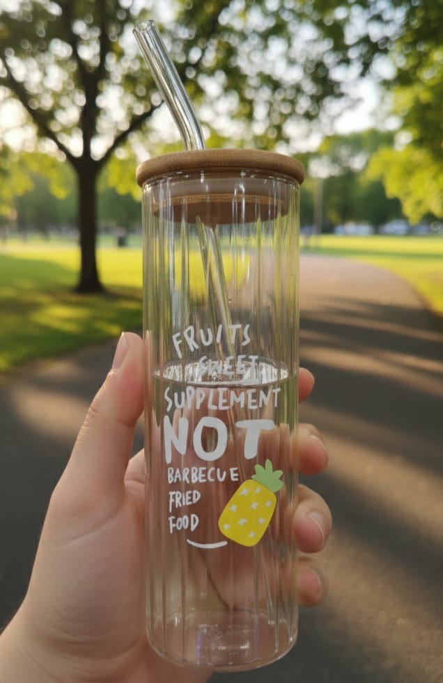 The Glass Ribbed Tumbler with Bamboo Lid & Glass Straw offers a stylish, eco-friendly way to enjoy your favourite beverages. Its ribbed glass design provides a comfortable, non-slip grip, while the natural bamboo lid ensures a secure, leak-resistant seal. Complete with a reusable glass straw, it’s perfect for both everyday hydration and elegant on-the-go sipping.