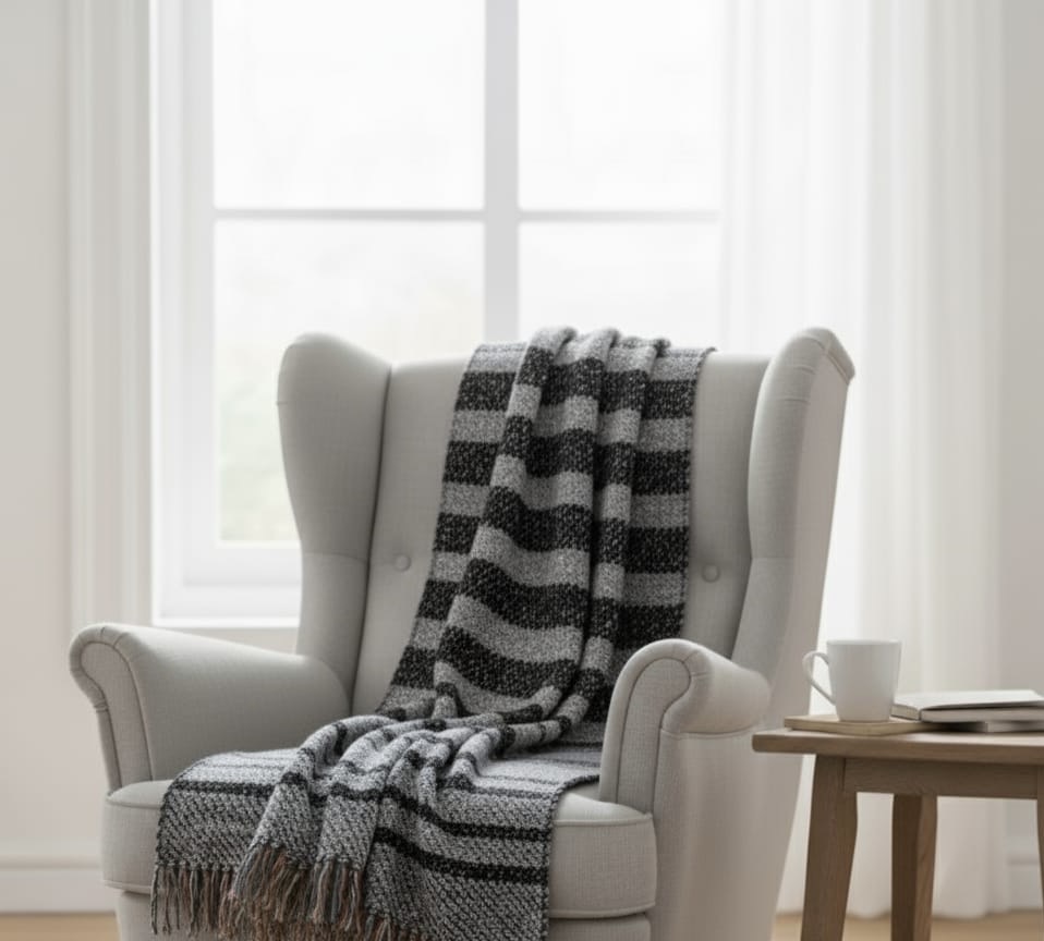 The HOMESAZZ Knitted Throw is a cozy and decorative textile sized at 130cm x 160cm, making it an ideal accent piece for draping over a sofa, armchair, or the foot of a bed.1 This throw features a soft, knitted texture, which provides both comforting warmth and a visually appealing, textural element to enhance your interior decor.2 Its standard, versatile dimensions make it perfect for snuggling up on chilly evenings or simply adding a stylish layer of color and depth to any living space.