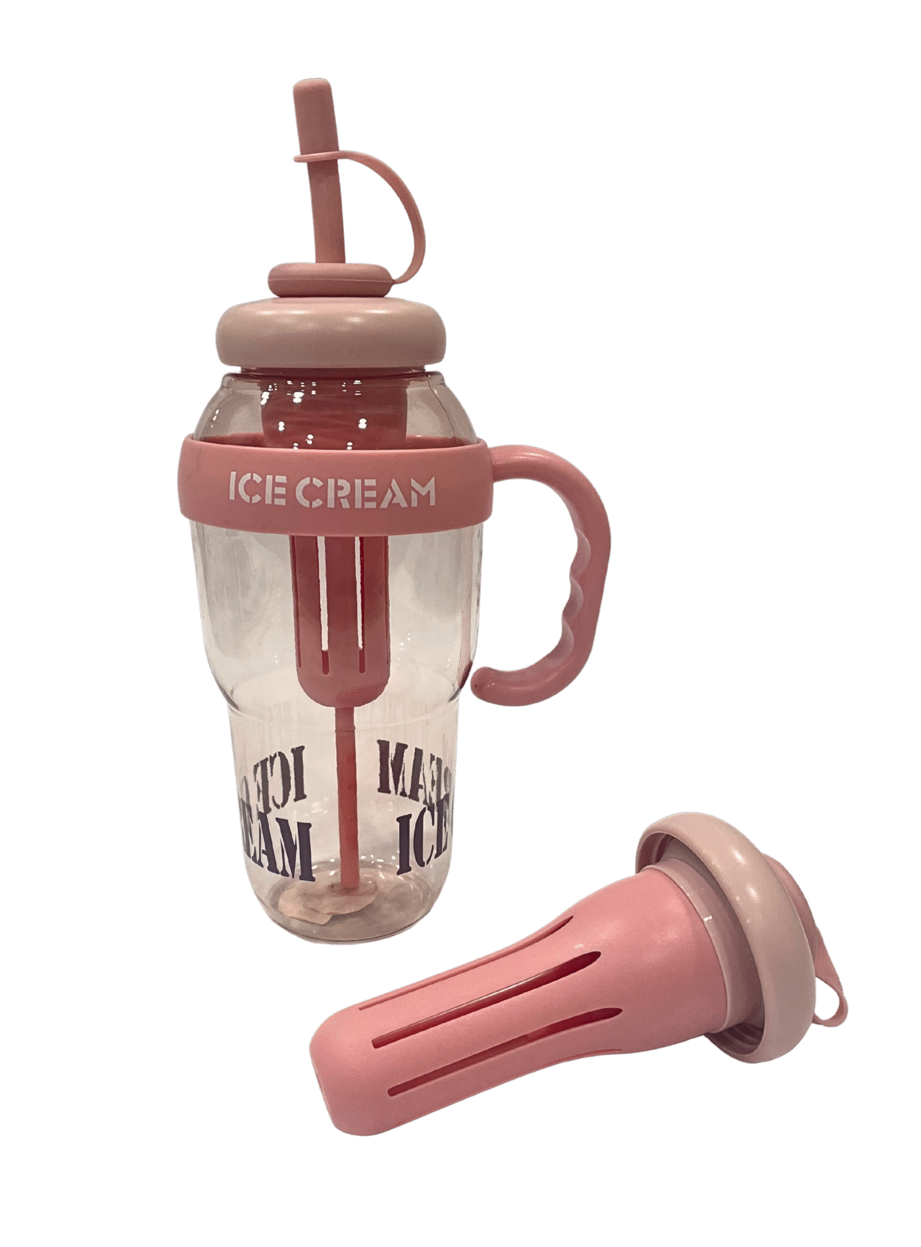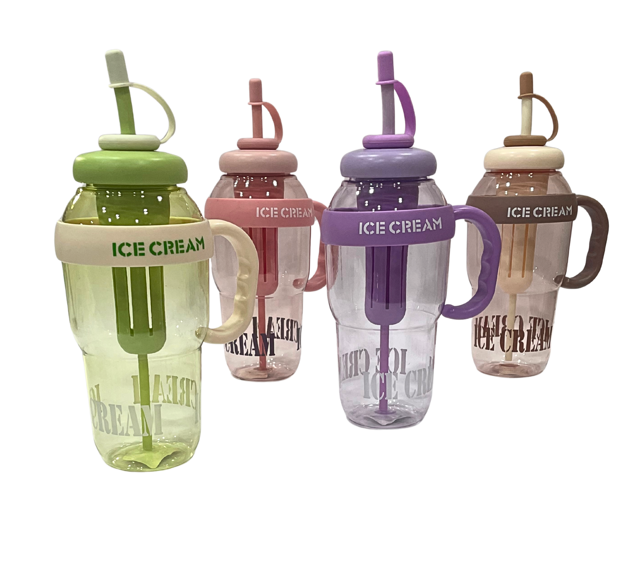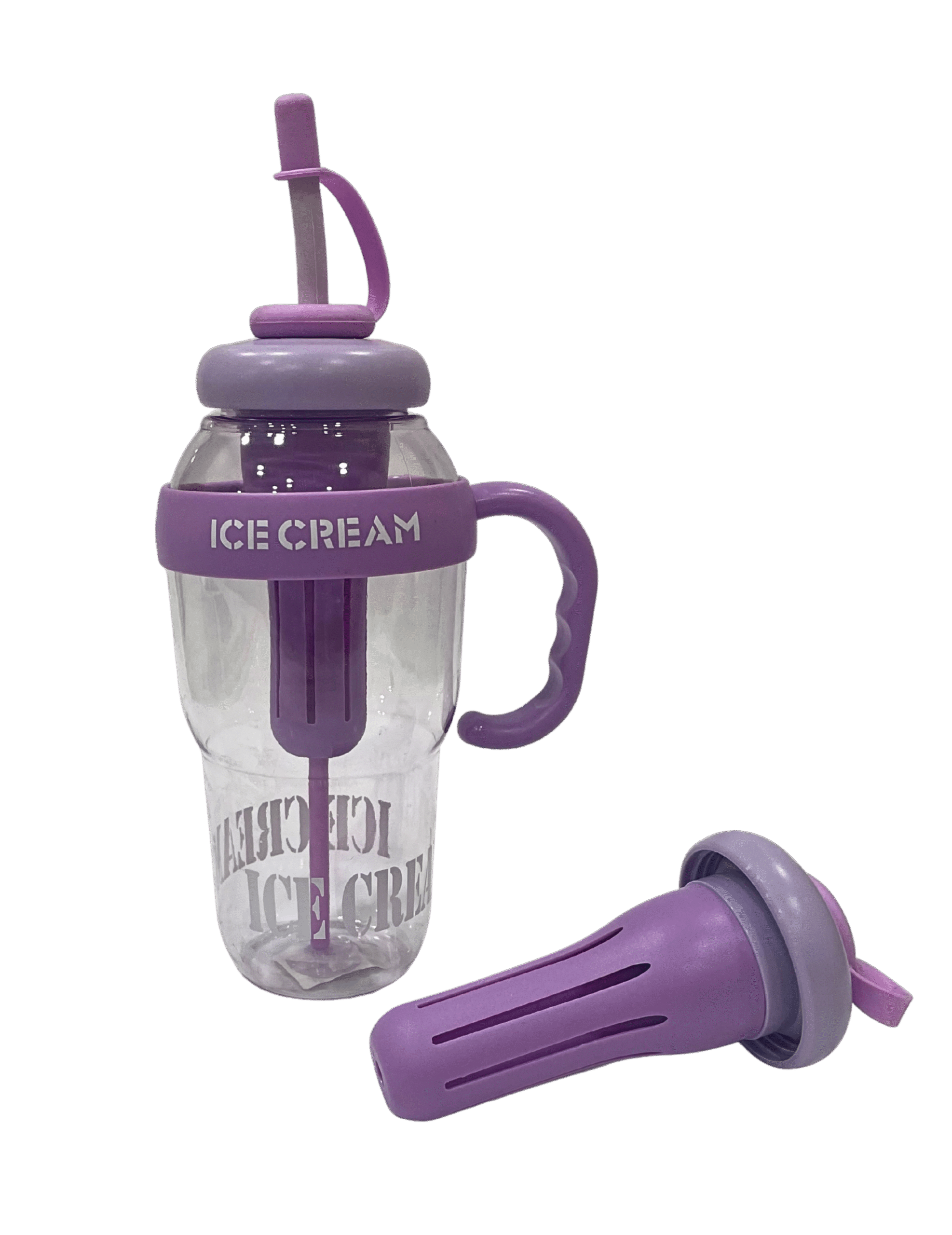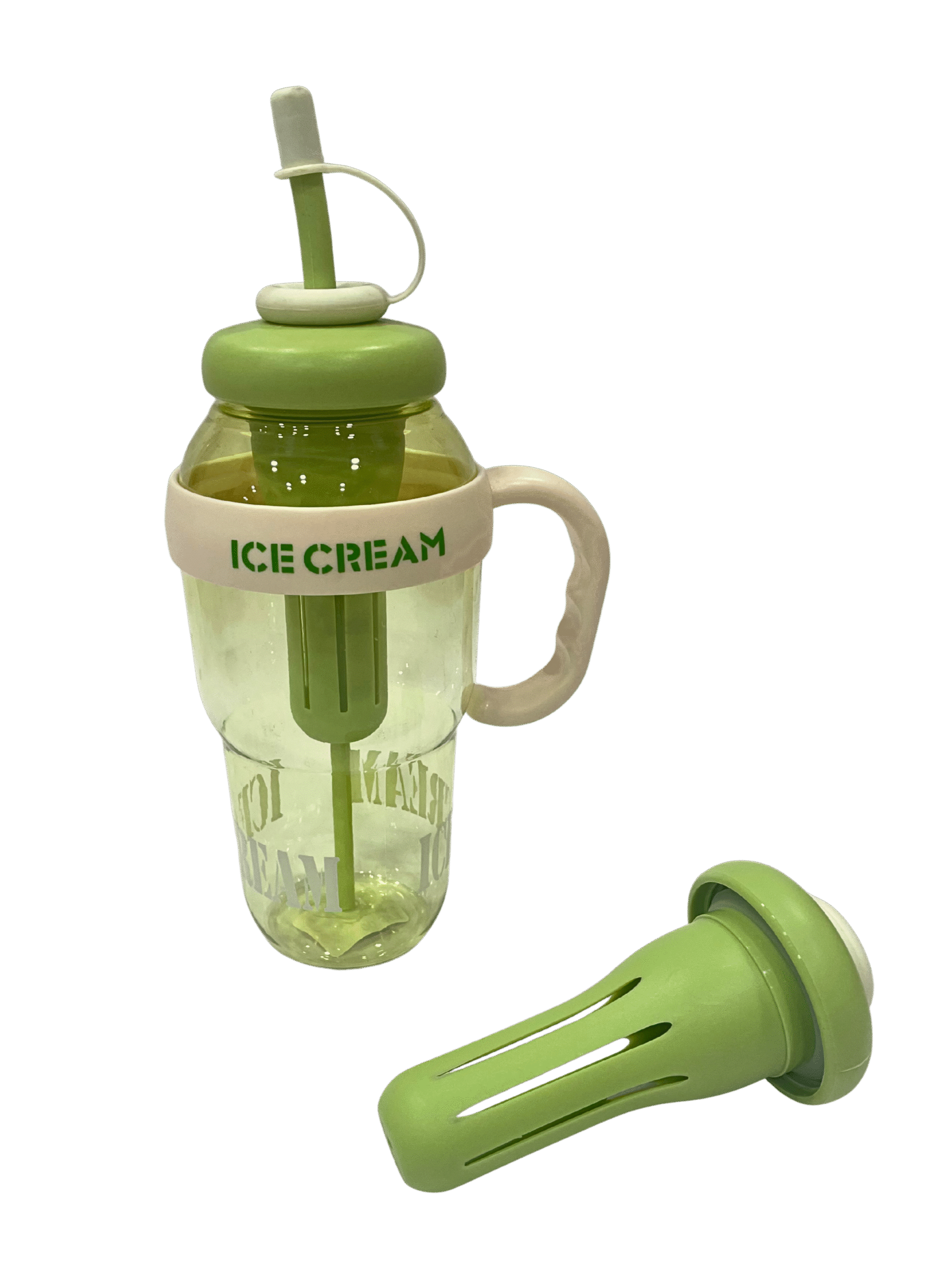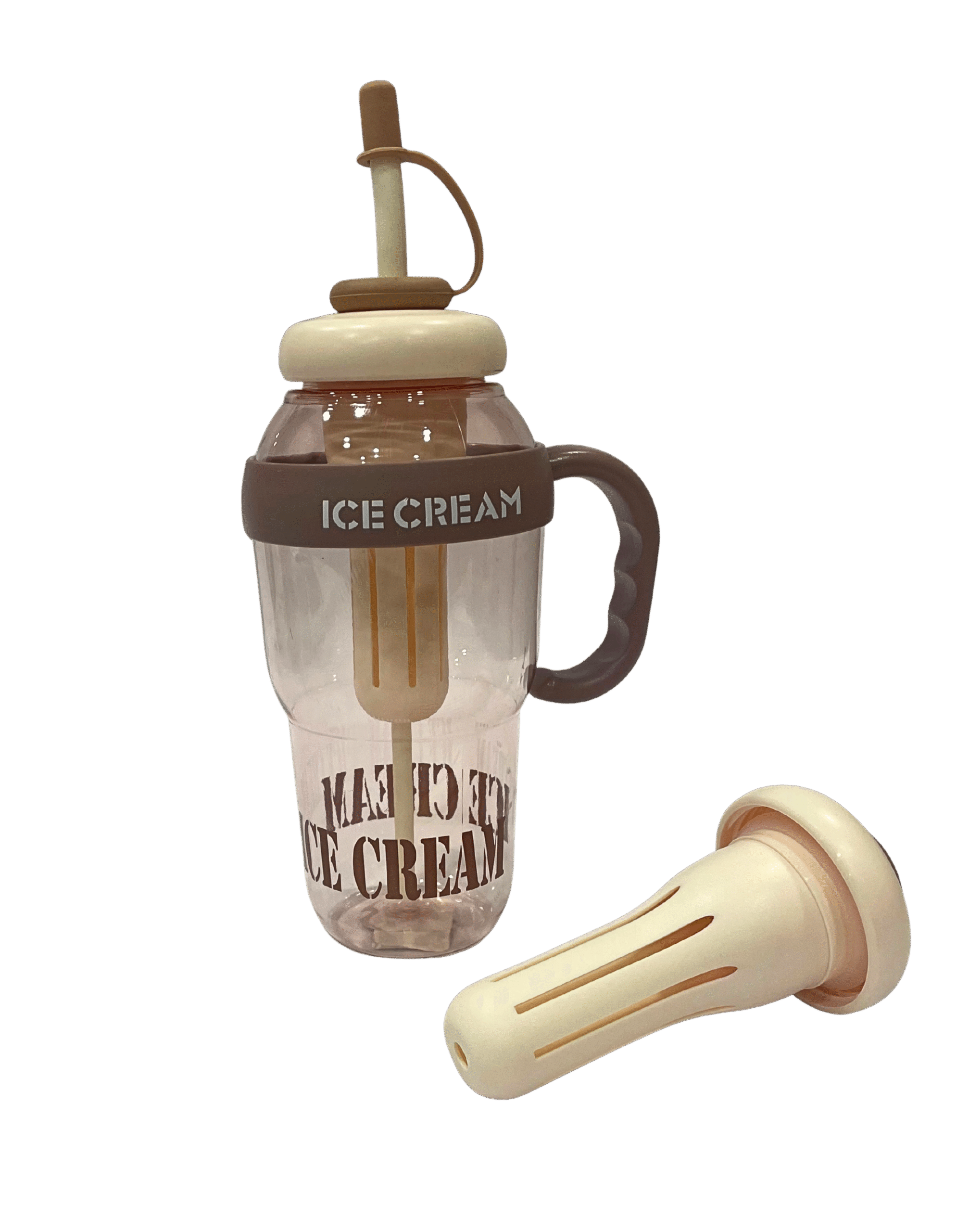 Plastic Ice cream bottle with straw. Comes in assorted colors.