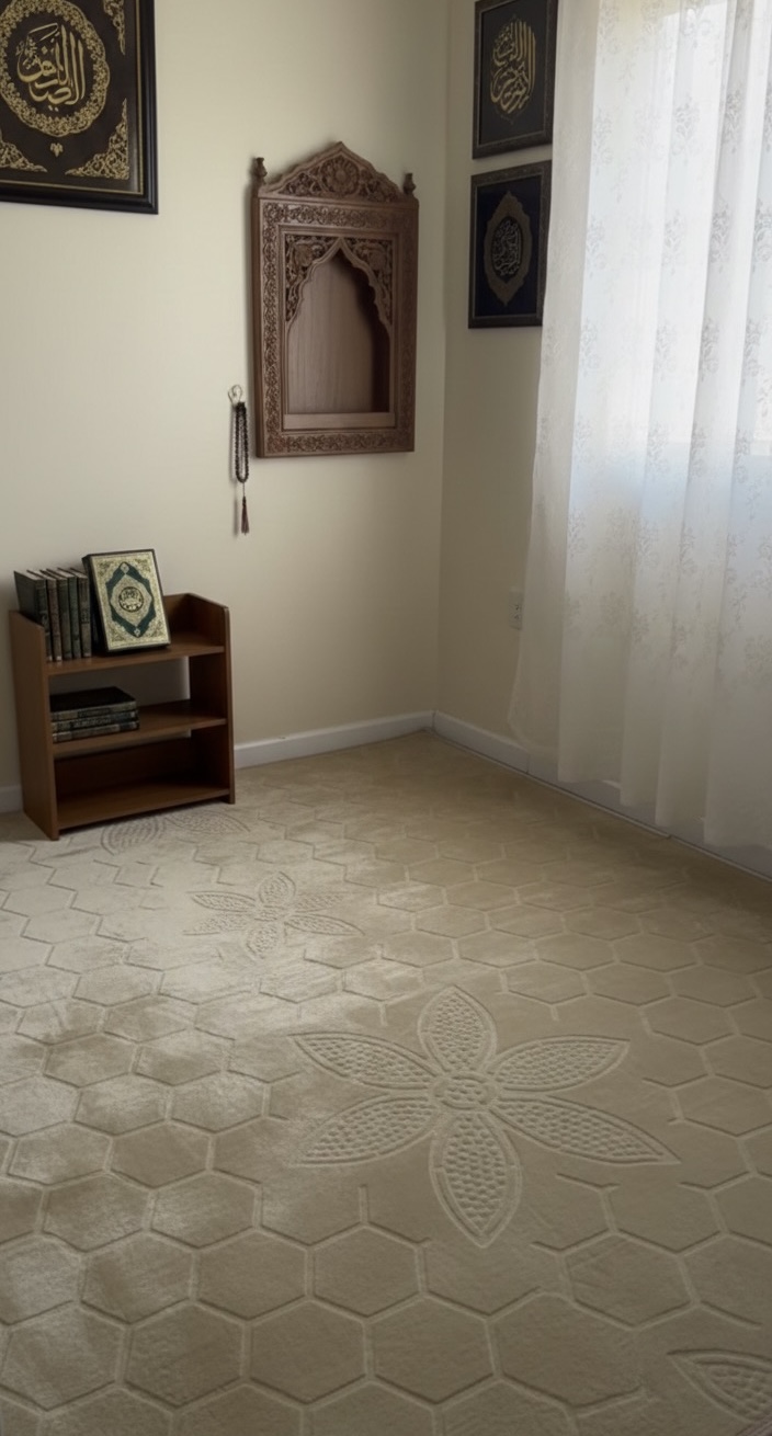 Elegant embossed patterns add a touch of tradition and style. Soft and comfortable fabric ideal for daily prayer use.This 80x120cm mat is large in size and is suitable for both adults and kids. Doubles as a decorative carpet or floor mat for any space.Lightweight and easy to fold for travel or storage. Comes in assorted colours.