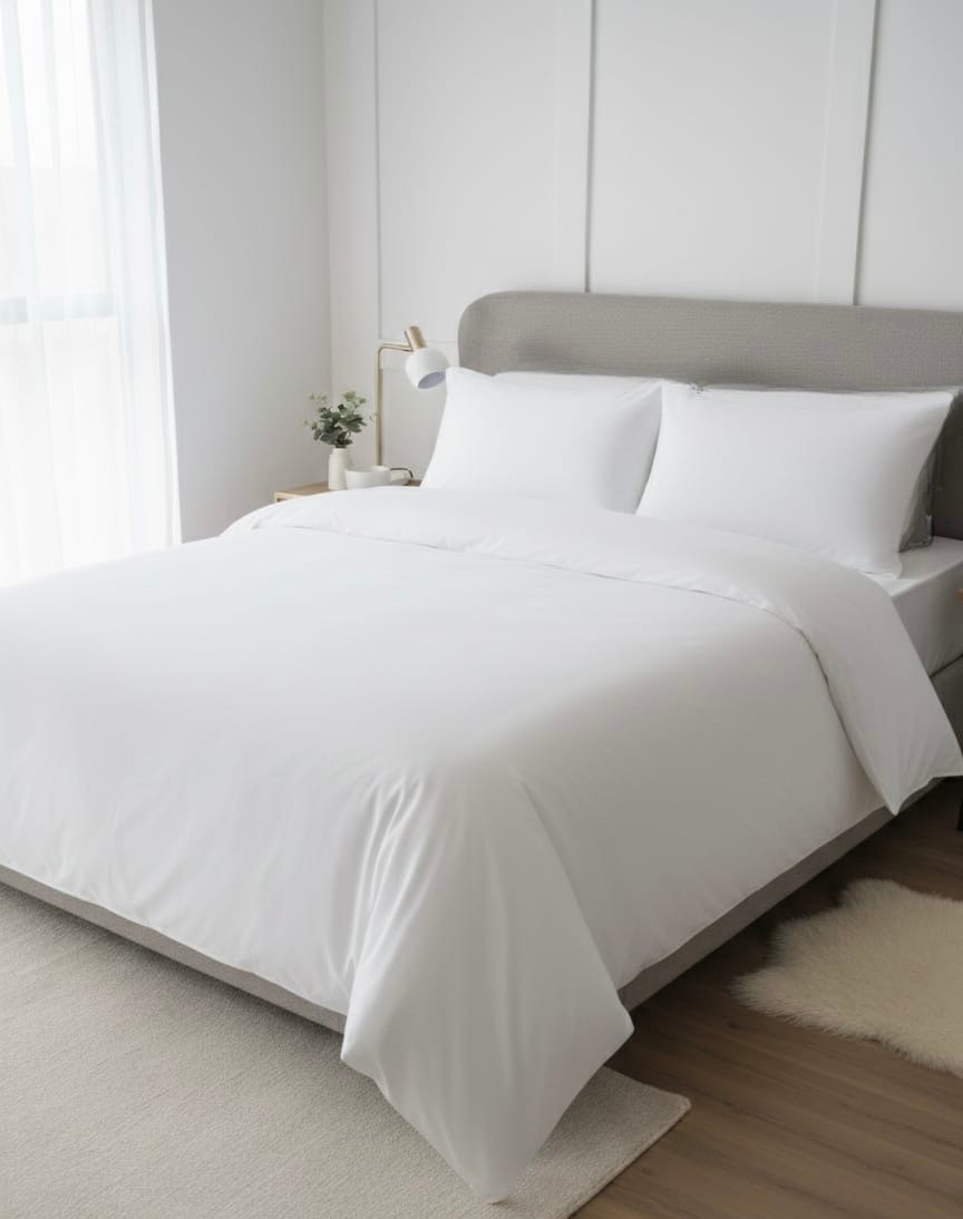 The Serene Super King Duvet Cover is crafted from 100% cotton with a smooth and breathable 200 thread count, offering exceptional softness and comfort. Designed in a classic plain white finish, it brings a clean and timeless elegance to any bedroom décor. Its high-quality cotton construction ensures durability and a gentle feel against the skin, making it an ideal choice for those who appreciate simplicity, quality, and a restful night’s sleep.
